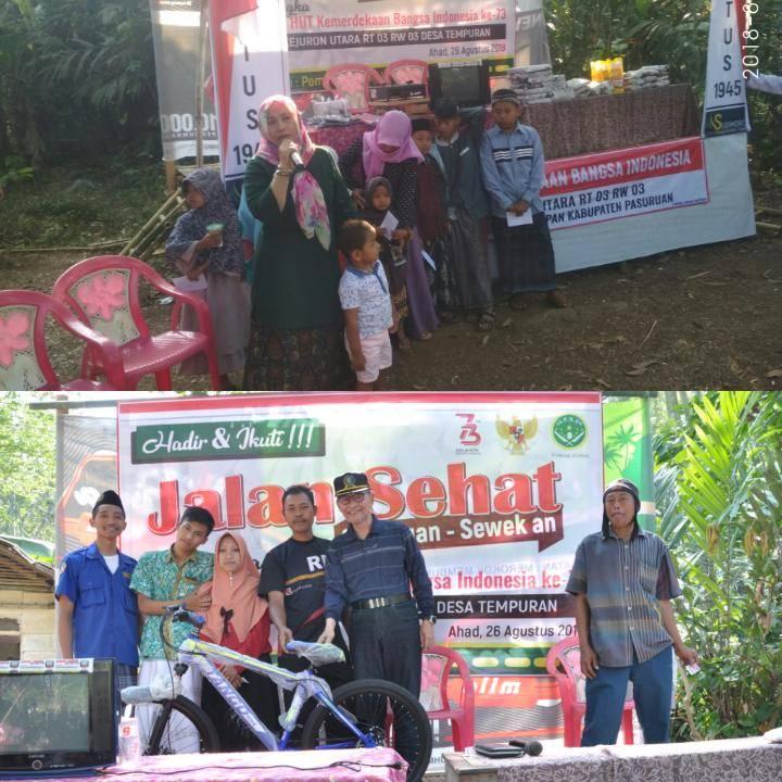 Portalarjuna.net- Cara unik yang di lakukan pemuda Dusun kejuron utara Desa Tempuran Kecamatan Pasrepan, dalam memperingati HUT Kemerdekaan RI Ke-73 tahun 2018 cukup menarik perhatian warga, bahkan acara Jalan Sehat dengan tema : SARUNGAN – SEWEKAN, dihadiri tokoh-tokoh penting termasuk Anggota DPRD Jawa Timur dan DPRD Pasuruan Minggu 26/08/2018.