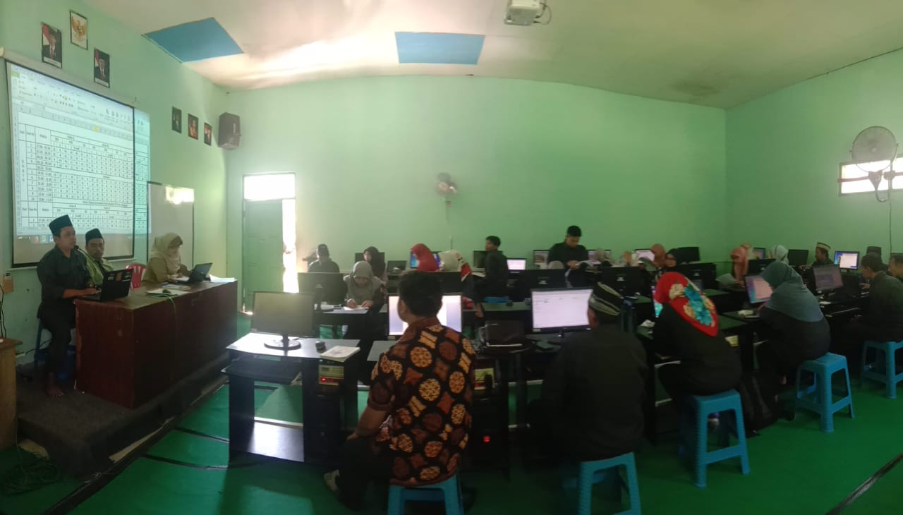 Portalarjuna.net-Dihadapan Pengawas Madrasah dan Dewan Guru peserta Bimtek Pembuatan perangkat belajar, Kepala Madrasah Aliyah Darut Taqwa sampaikan optimisnya menjadikan almamaternya sebagai barometer madrasah literasi nasional (15/7) di Laboratorium Bahasa