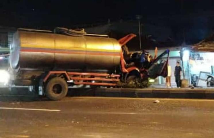 “Mobil tangki air berada di posisi kurang menguntungkan. Diduga sopirnya ngantuk saat mengemudikan kendaraannya,” kata Bapak Arifin selaku warga setempat.