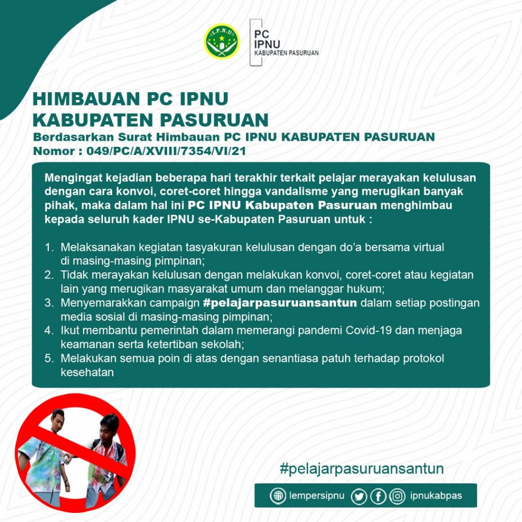 PC IPNU Kabupaten Pasuruan Terbitkan Surat Himbauan, Merespon Kejadian Viral Pelajar Coret Gapura