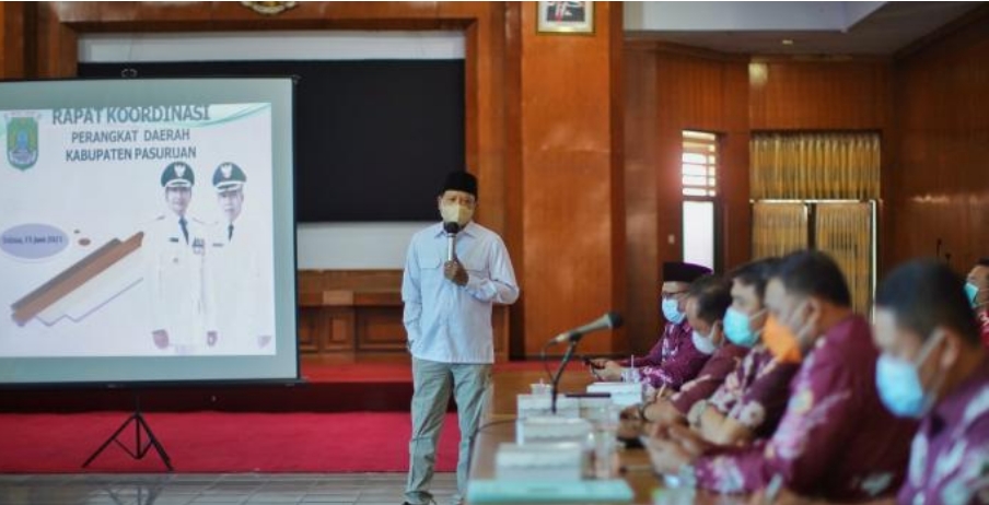 Dalam Rapat Koordinasi Organisasi Perangkat Daerah (Rakor OPD) yang dilaksanakan di Gedung Serba Guna Kabupaten Pasuruan, Selasa (15/6/2021), Bupati Pasuruan Irsyad Yusuf menekankan tentang kedua hal esensial tersebut. Sekaligus berpesan kepada seluruh Kepala OPD dan Camat yang hadir dalam forum agar segera memetakan capaian keberhasilannya.