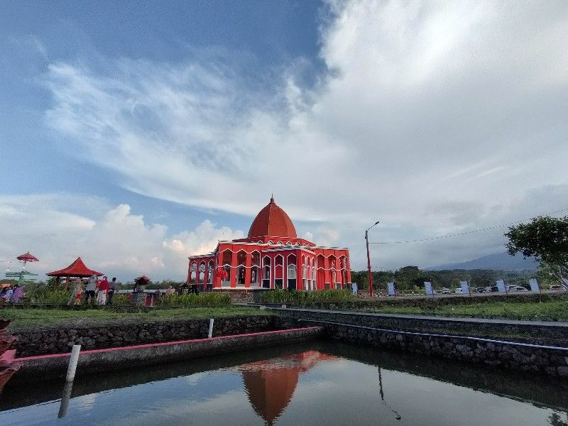 PortalArjuna.Net-pandaan, Jika ke Taman Dayu atau perjalanan ke Kafe Gunung, terlihat masjid berwarna merah yang berada di tengah sawah. Sesuai warnanya, tempat ibadah umat muslim itu disebut sebagai Masjid Merah. Bangunan Masjid Merah tepatnya berlokasi di Desa Durensewu, Kecamatan Pandaan, Kabupaten Pasuruan, Jawa Timur. Lantaran warna merah yang mencolok, banyak yang penasaran. Benarkah Masjid Merah itu milik parpol (partai politik)?