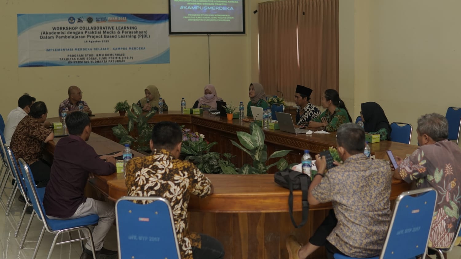 Portalarjuna.net-Pasuruan, Kiat Persiapkan Lulusan yang terampil di bidang skill Ilmu Komunikasi, Prodi Ilmu Komunikasi Universitas Yudharta Pasuruan menyelenggarakan Workshop Collaborative Learning berbasis Project Based Learning (PjBL) antara Akademisi bersama Praktisi media.