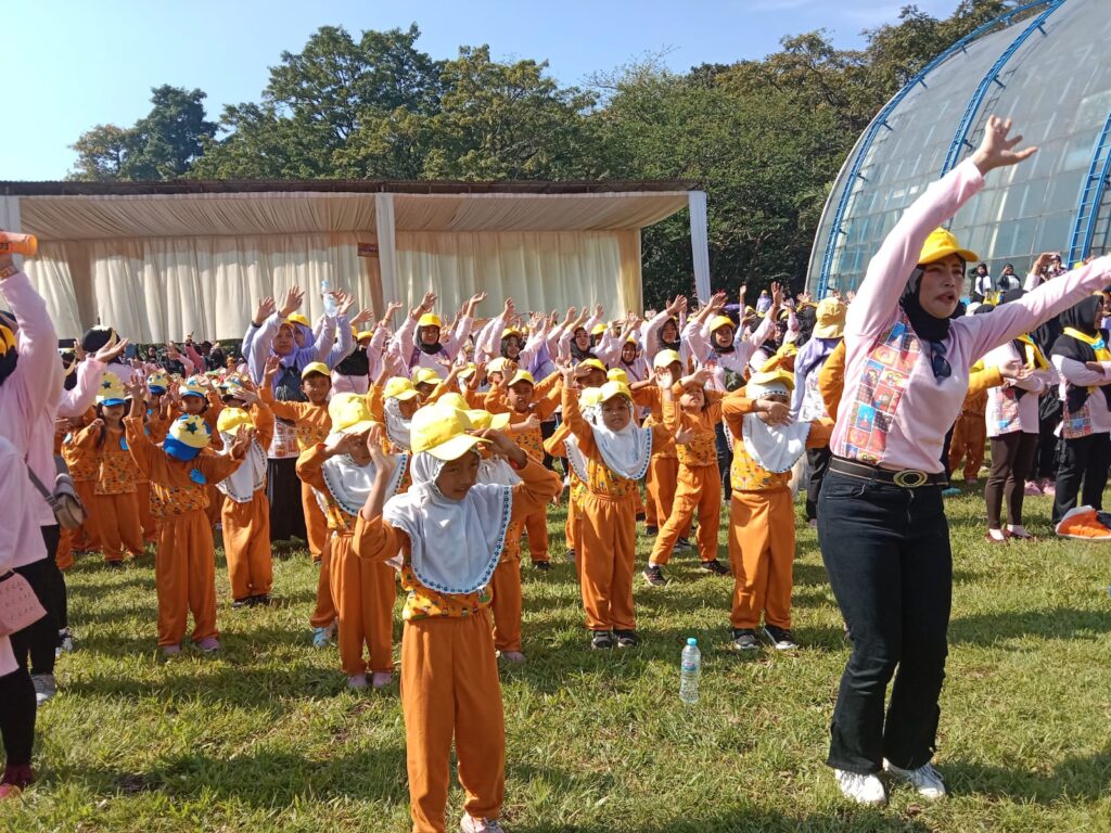 Seru! Ribuan Anak TK Senam Masal di Kebun Raya Purwodadi