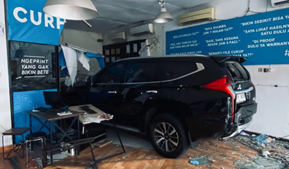 Pajero Hitam Tabrak Kantor Percetakan di Klampis Surabaya
