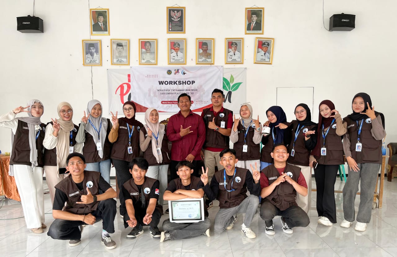Workshop ini dihadiri oleh kader PKK, ibu-ibu desa, serta perangkat desa yang tampak antusias mengikuti jalannya kegiatan dari awal hingga akhir. Para peserta mendapatkan kesempatan langsung untuk mempraktikkan proses pembuatan dua jenis cat yang ekonomis dan ramah lingkungan, yaitu cat dari limbah Styrofoam dan cat tembok berbahan dasar semen putih.