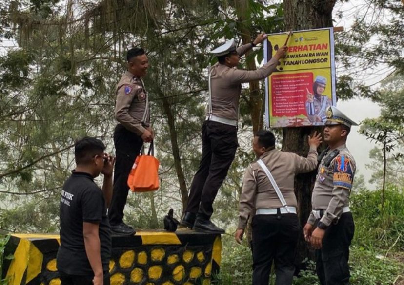 Polisi Pasang Peringatan Longsor di Jalur Wisata Bromo Tosari