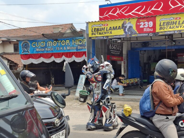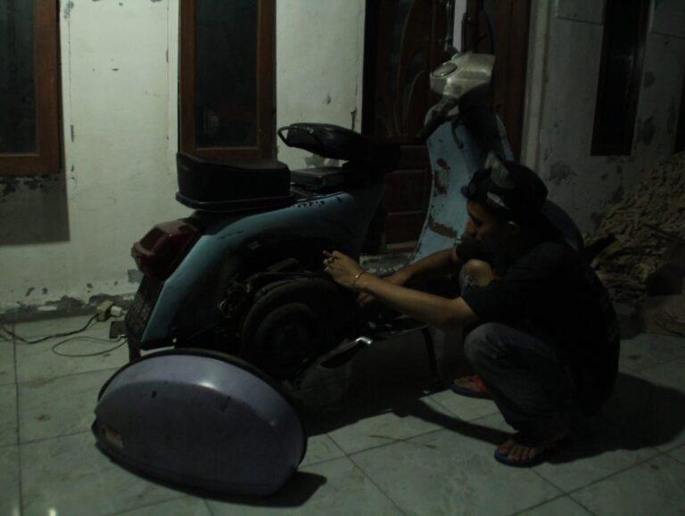 Di perempatan Tamandayu, di bawah panas matahari dan ramainya kendaraan yang melintas, Santoso (51) tampak tekun merangkai potongan limbah menjadi miniatur kapal. Setiap hari ia membawa bahan-bahan bekas dari rumahnya di Japanan untuk dijual demi memenuhi kebutuhan hidup.