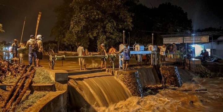 Gambar : Instagram @updatemojokerto PortalArjuna.Net-Mojokerto, Akibat dari hujan lebat yang terjadi sejak Minggu sore (17/01/2021), membuat sungai Kelotok hampir meluap ke